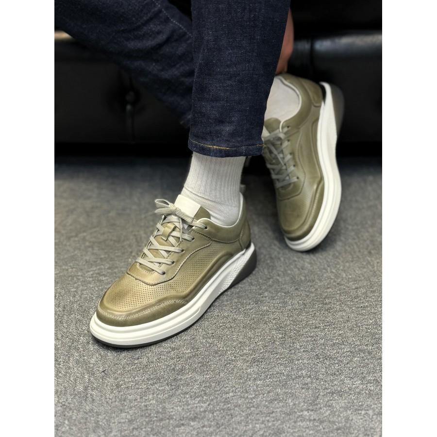 Haki renk Deri sneaker Ayakkabı Comfort Tabanlı