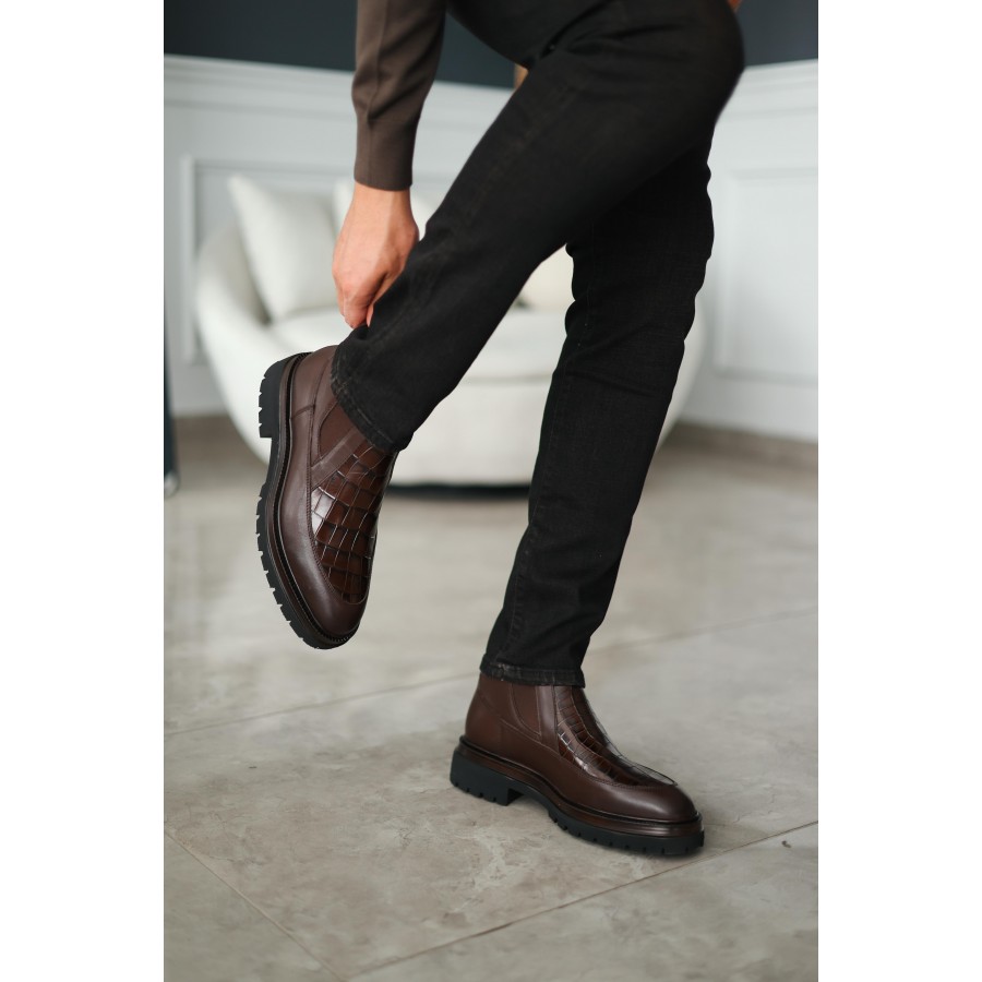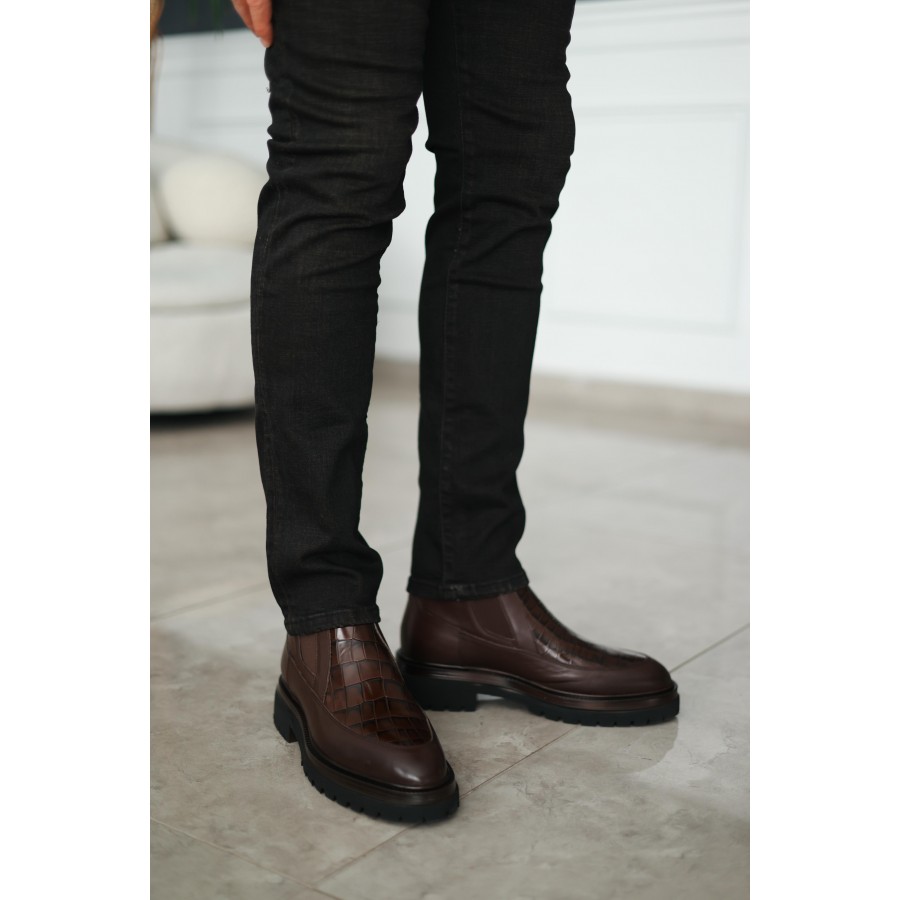 CrocLux Kroko Bot Zarafet ve iddianın modern yorumu: CrocLux Kroko Bot, özel kroko desenli deri yapısıyla tarzınıza sofistike bir dokunuş katar. Şık tasarımı, güçlü duruşu ve kaliteli işçiliğiyle hem şehir yaşamında hem de özel davetlerde kusursuz bir tamamlayıcıdır. Özel Kroko Desen Deri: Premium görünüm ve uzun ömürlü kullanım. Rahat Kalıp & Dayanıklı Taban: Gün boyu konfor ve sağlam adımlar. Modern & Klasik Arası Denge: Hem casual kombinlerde hem klasik şıklıkta uyumlu. CrocLux Kroko Bot, maskülen şıklığı ön plana çıkarırken her adımda özgüveni yansıtır. Gardırobunuzun vazgeçilmez parçası olmaya aday.
