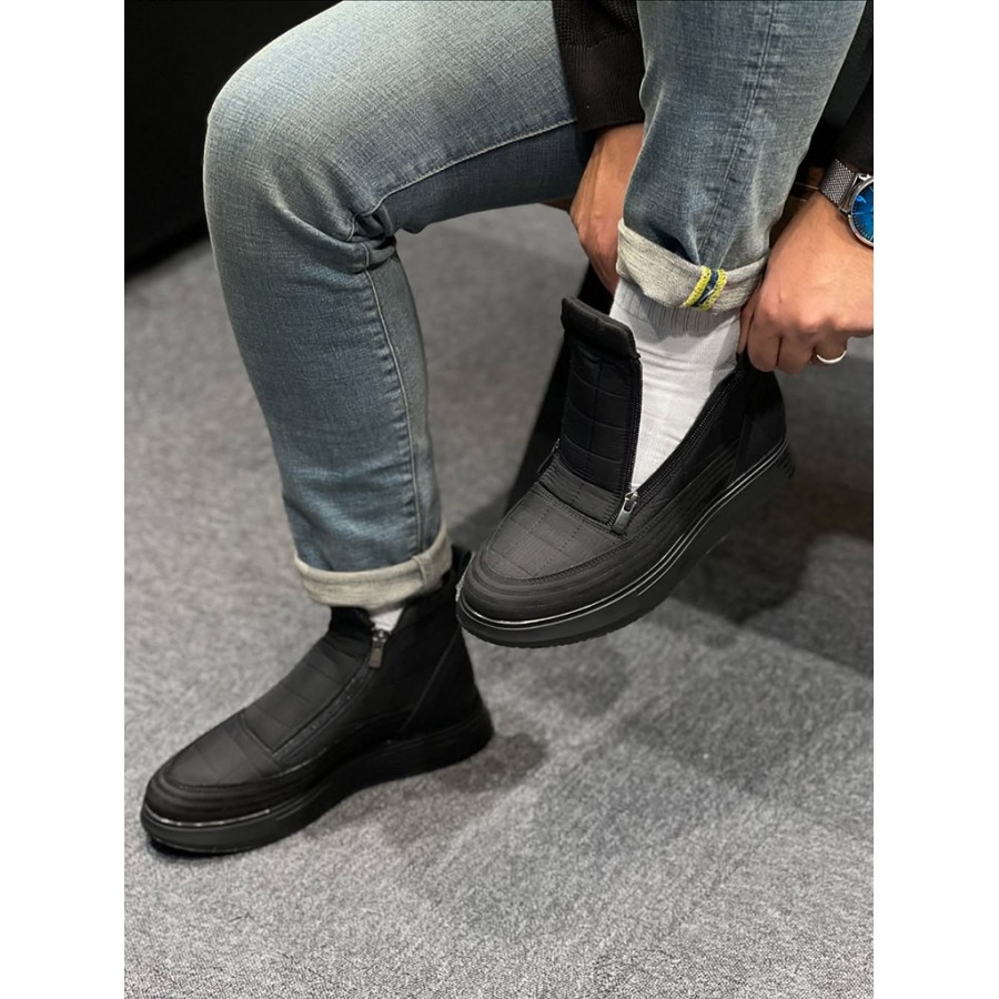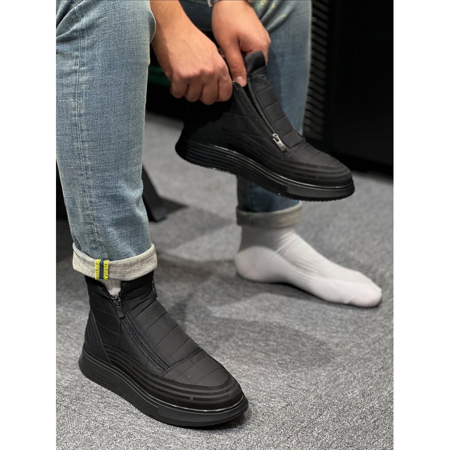 Erkek Siyah Çift Fermuarlı Spor Bot – Su Geçirmez Kumaş, kış aylarında hem stilinizi tamamlayan hem de yağışlı havalarda ayağınızı koruyan modern, dayanıklı ve konforlu bir bot arayan erkekler için mükemmel bir tercihtir.