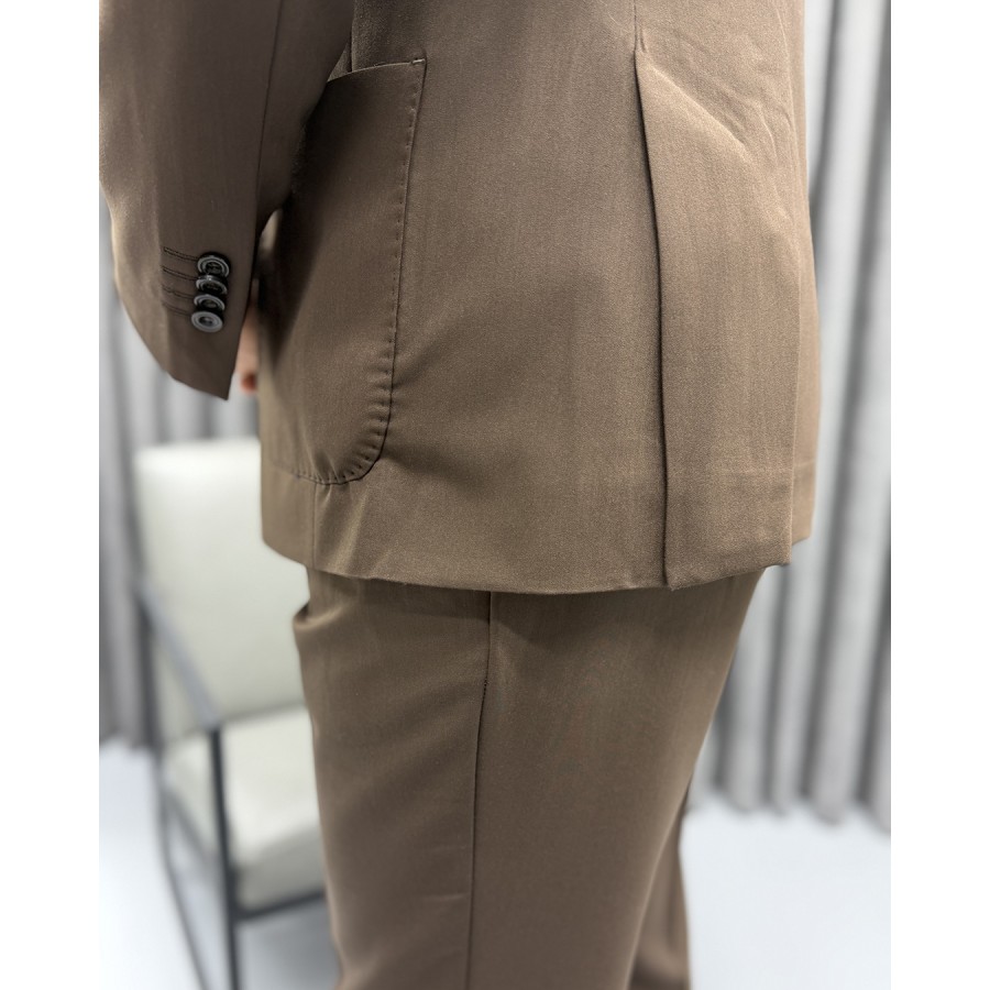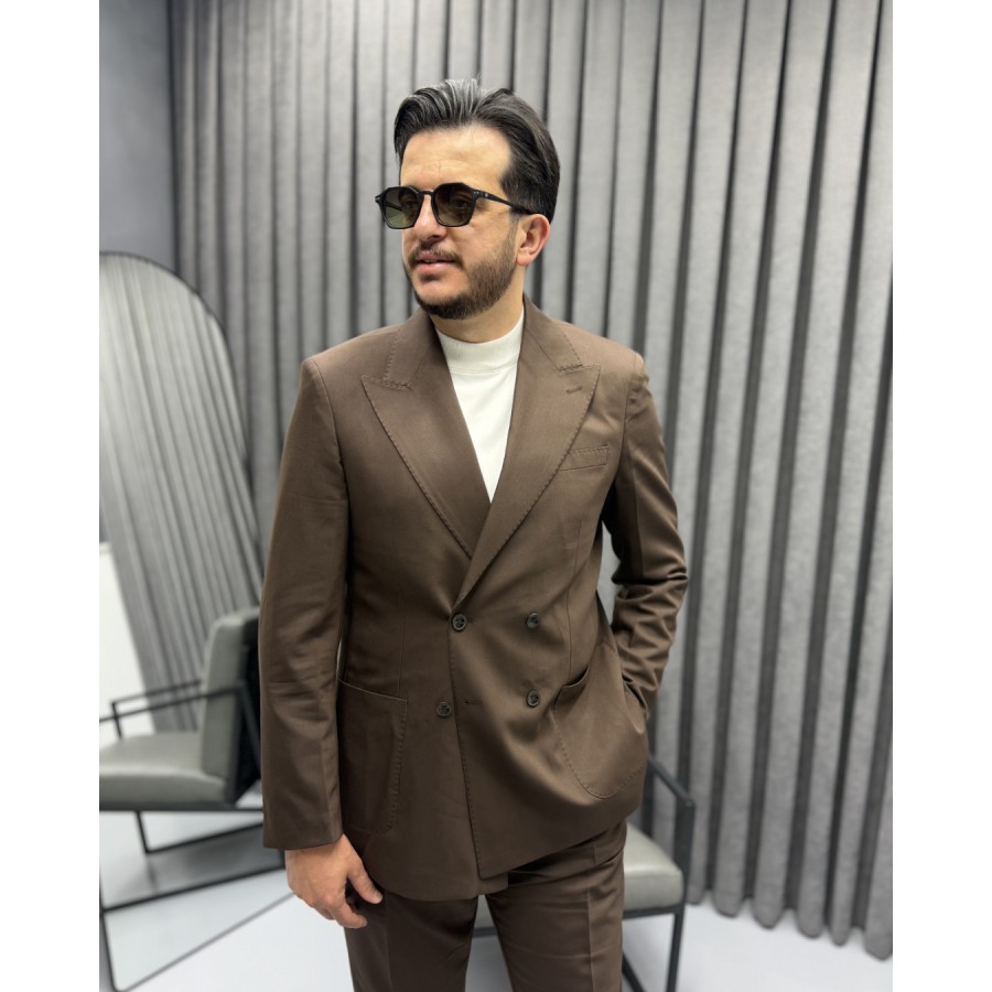 Classic Brown Kruvaze Takım Elbise Pile ve Toka Detaylı