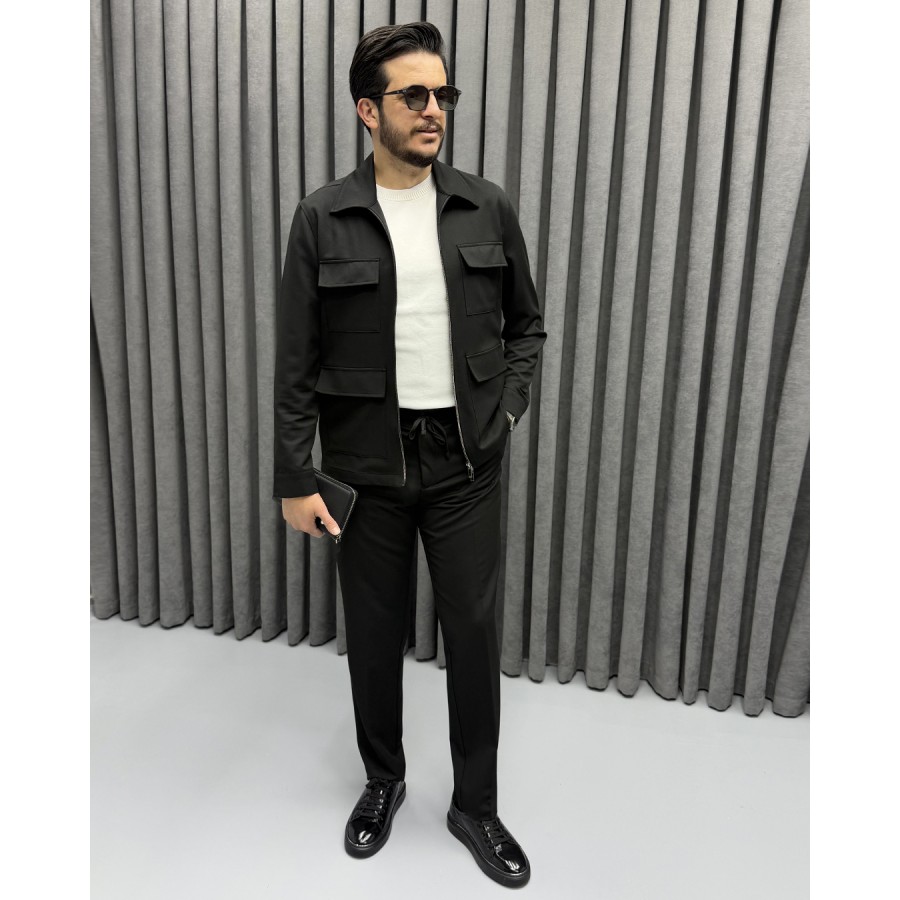 Modern şehir stilini fonksiyonellikle buluşturan bu premium spor takım, gün boyu konfor ve şıklığı bir arada sunar. Minimal tasarımına hareket katan cep detayları ve çift fermuarlı üst tasarımı ile dikkat çeken model, hem günlük kullanım hem de smart casual kombinler için ideal bir tercihtir.