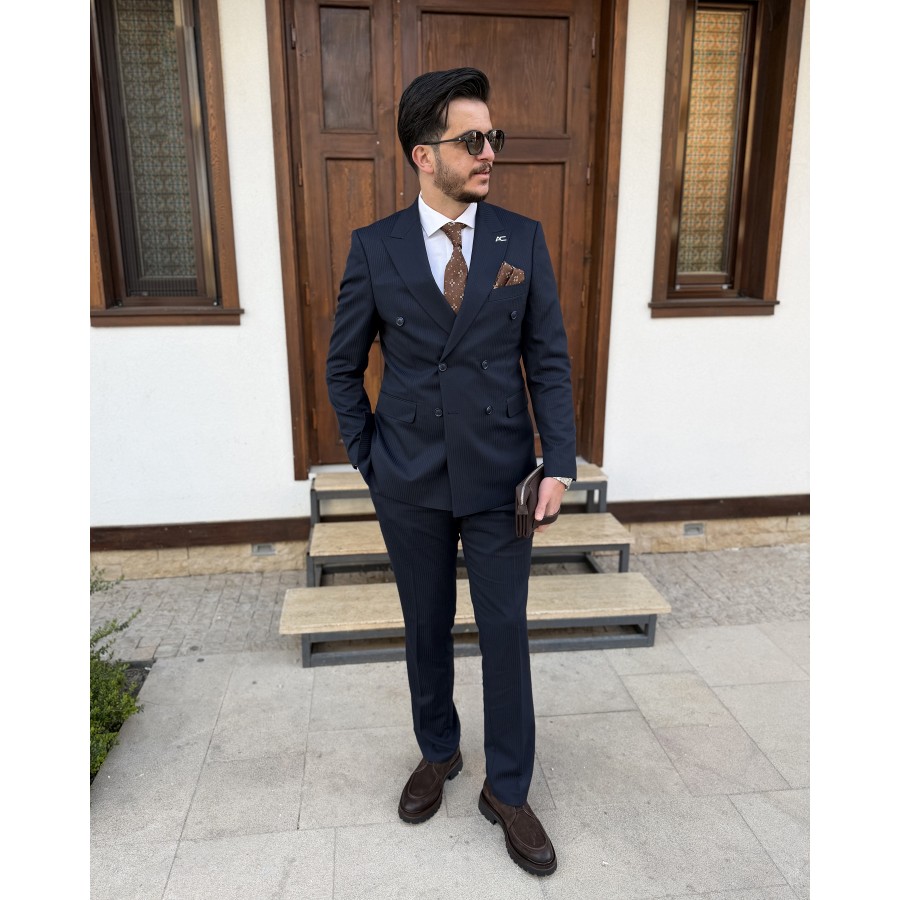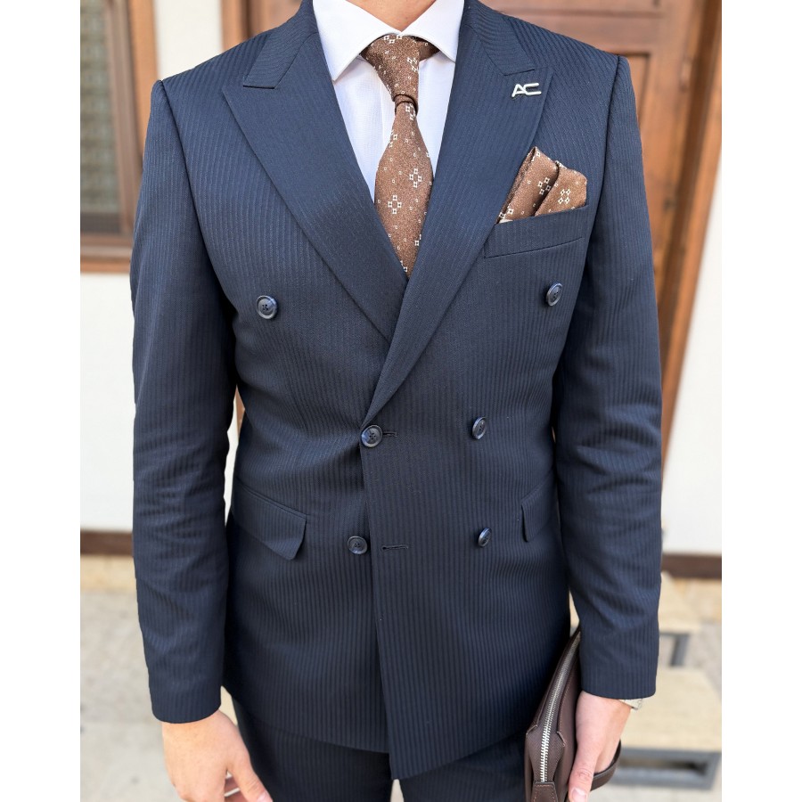 Erkek Exclusive Pinstripe Kruvaze Takım Elbise