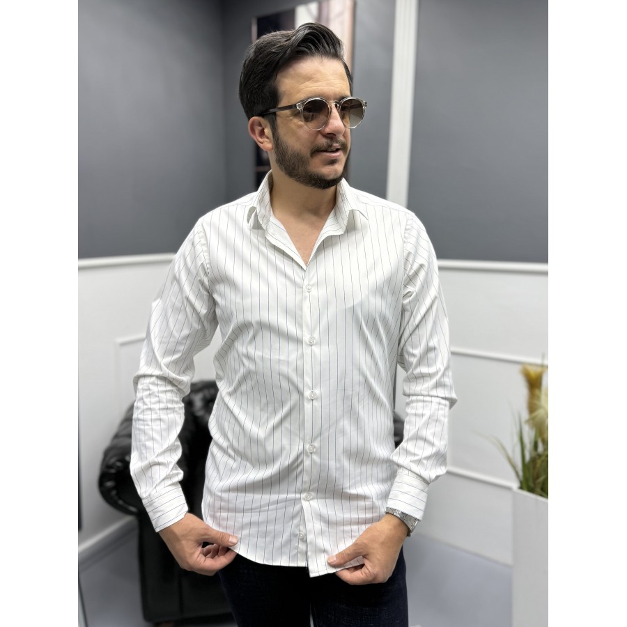 Zarif çizgili deseni ve modern fit kesimiyle öne çıkan bu cepsiz erkek gömlek, şıklık ve rahatlığı bir araya getiriyor. %100 pamuk saten kumaştan üretilen yapısı sayesinde yumuşak bir dokunuş sunarken, non-iron (ütü gerektirmeyen) özelliği ile gün boyu pürüzsüz kalır.