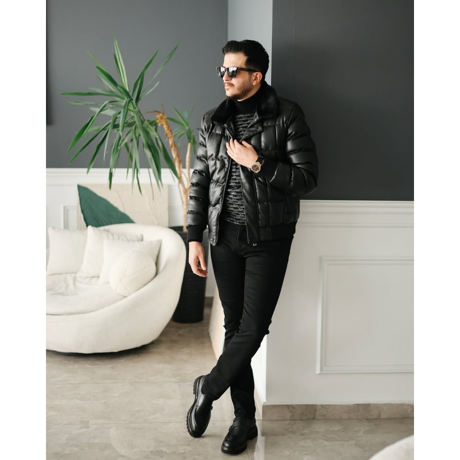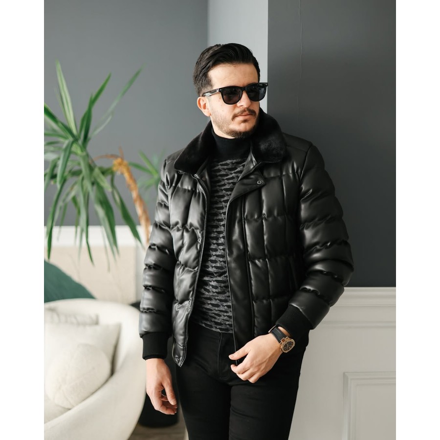 BlackRoyce Dolgulu Yaka Kürk Detaylı Deri Mont