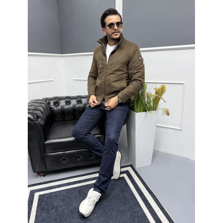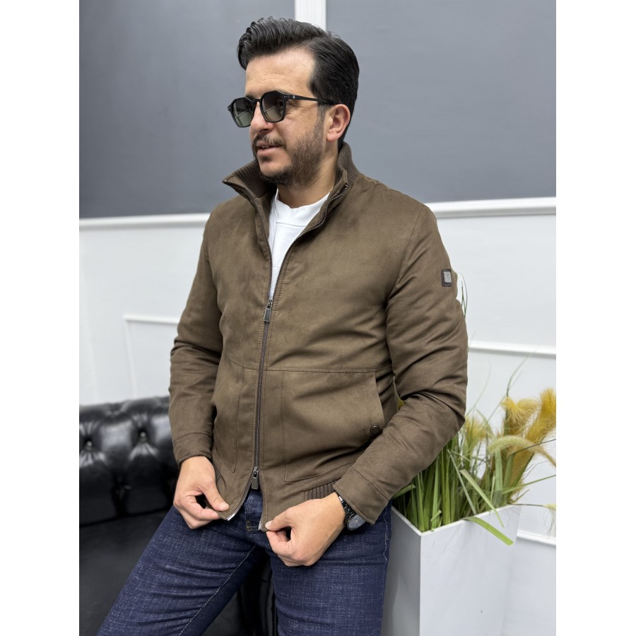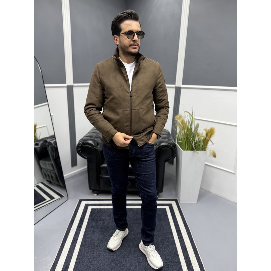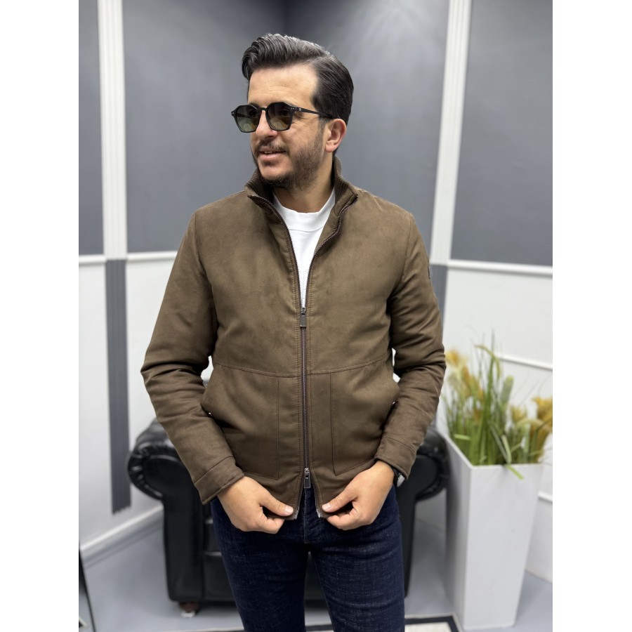 Erkek Nubuk Çift Fermuarlı Kahverengi Mont