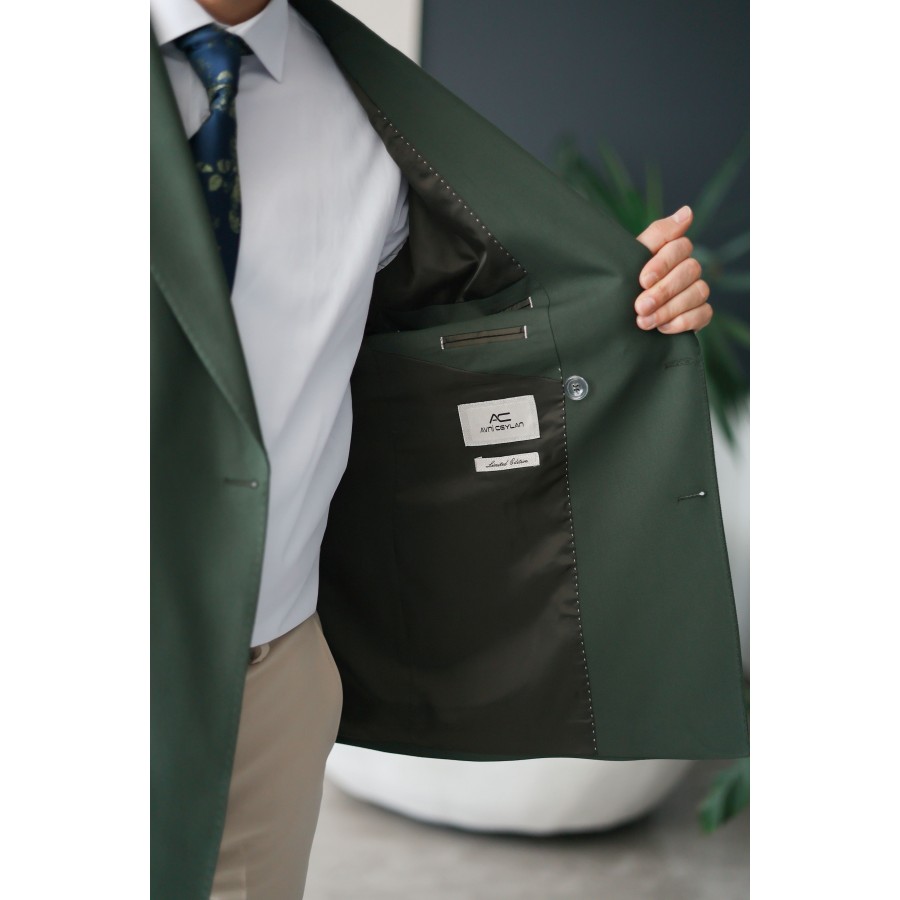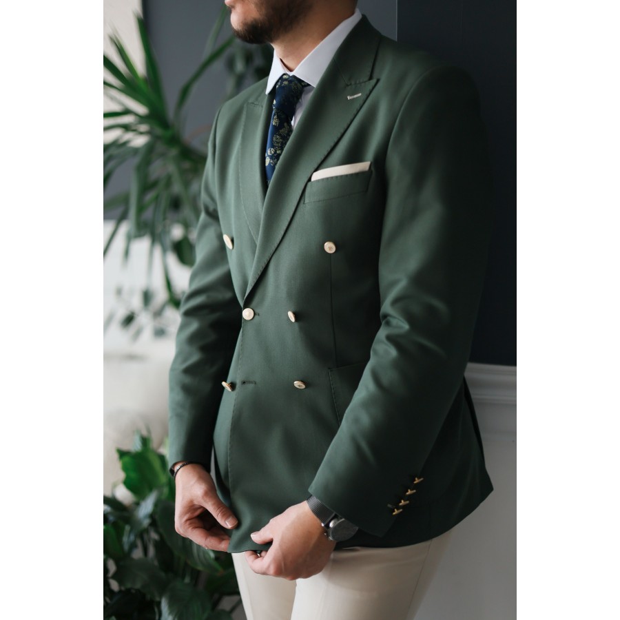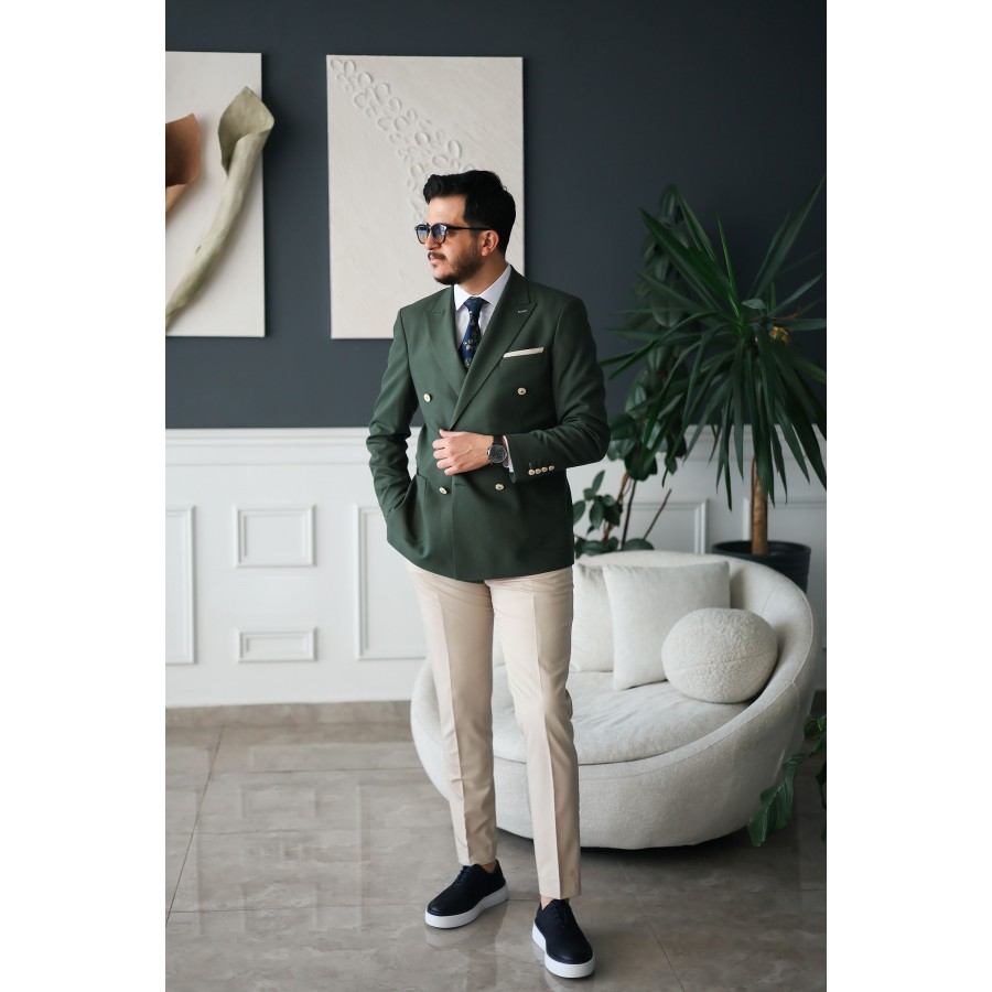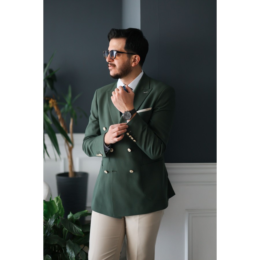 - ürün özellikleri: Kalıp: Slim fit vücuda oturan, zarif bir siluet ceket: Kruvaze model, sivri yaka, çift yırtmaçlı arka tasarım pantolon: Dar kesim, modern paça yapısı kumaş: Özel dokuma karışım nefes alabilen, konforlu ve dayanıklı renk: Haki doğayla uyumlu, sofistike bir duruş detaylar: Metalik düğme detayları, özel iç astar ve dikiş işçiliği ister özel davetlerde ister iş toplantılarında, bu takım elbise ile tüm gözler üzerinizde olacak.